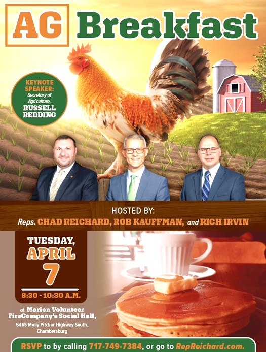 LOCAL REPRESENTATIVES INVITE THE PUBLIC TO AN AGRICULTURE BREAKFAST on April 7 in Chambersburg